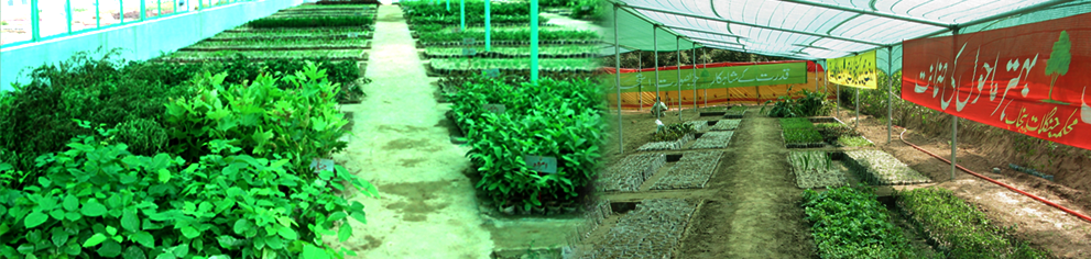 An area upon which young seedlings of trees are raised for forest planting. The supply of healthy planting is prerequisite for successful launching of tree plantation campaign. Raising of stumps seedling plants result in increase of tree cover in the province and also share in GDP. It also helps in economic and social uplift of the economy. It also generate employment during raising of nursery beside providing other tangible and intangible assets through planting of trees which result in carbon sequestration, increase oxygen omission, beside conserving indigenous flora and fauna through provision of ecological stable habitat. The Forest Department raised planting stock in potted and bed nursery for planting in state land and providing to Pakistan Army, other Govt. Department and private peoples. Resultantly the vegetation cover has increased in the province. The national targets for increasing in forest cover under Millennium Development Goals (MDGs) from 2005-06 to 2015 was from 5.0% to 6.0% in Pakistan. In case of goal 7 there was no target assigned to Punjab Forest Department. However, the department through Land Set Image 2012-13 calculated the area under tree cover (Forest + Farm Land) through GIS Laboratory, which comes to 6.85% of the total land area of the province. Thus the provincial area under the tree cover meets the national targets of 6%.